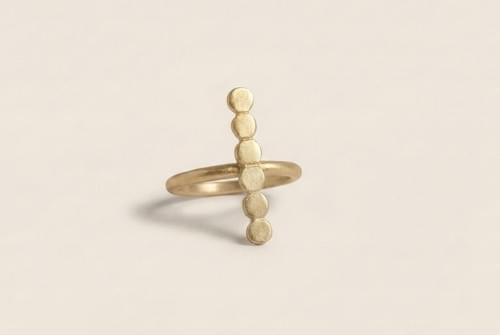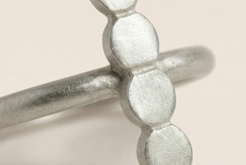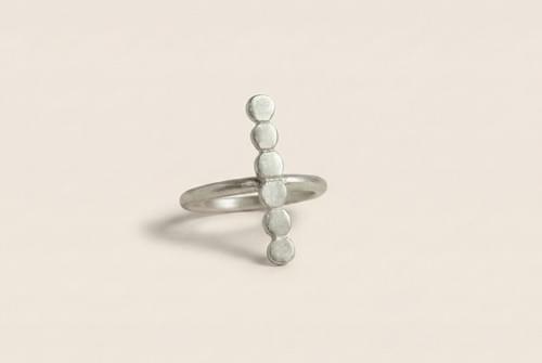 Neris trägt die Sprache der Linien – sechs kleine Punkte wie Schritte oder Spuren, die an Rhythmus, Identität und Wiederkehr erinnern. Ein schlichtes, kraftvolles Zeichen für Weg und Zugehörigkeit. Erhältlich in Fairmined Silber, Messing, Messing vergoldet oder auf Wunsch in Fairtrade Gold.