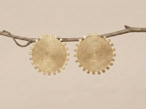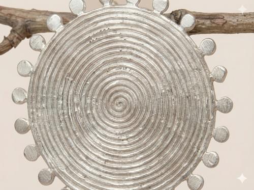 Noor trägt die Kraft des Lichts – eine strahlende, runde Form mit der Spirale des Lebens im Zentrum. Sie erinnert an Ahnenkraft, Schutz und Klarheit. Erhältlich in Fairmined Silber, Messing, Messing vergoldet oder auf Wunsch in Fairtrade Gold.